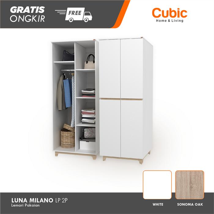 [PROMO] CUBIC LEMARI PAKAIAN MINIMALIS WARDROBE BAJU 2 PINTU LUNA MILANO 2P WHITESONOMA OAK