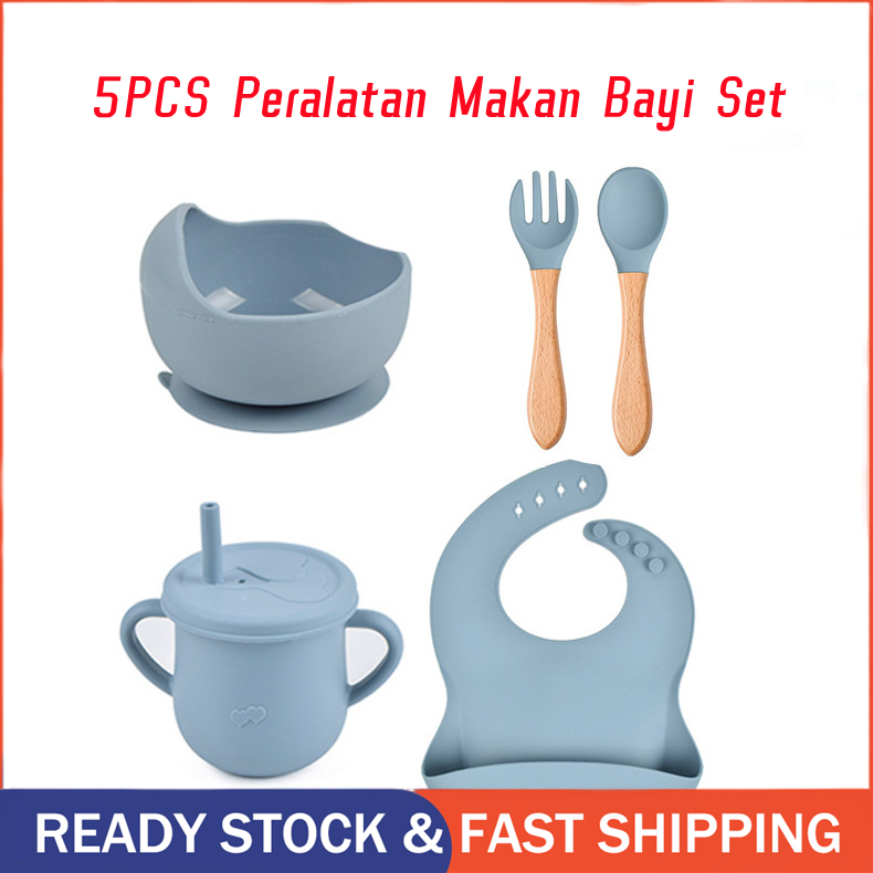 5PCS Peralatan Makan Bayi Set Peralatan Makan Silikon Peralatan Makan Bayi Bebas Formaldehida Peralatan Makan Bayi Tahan Tetesan Cocok Untuk Bayi Mulai Usia 3 Bulan