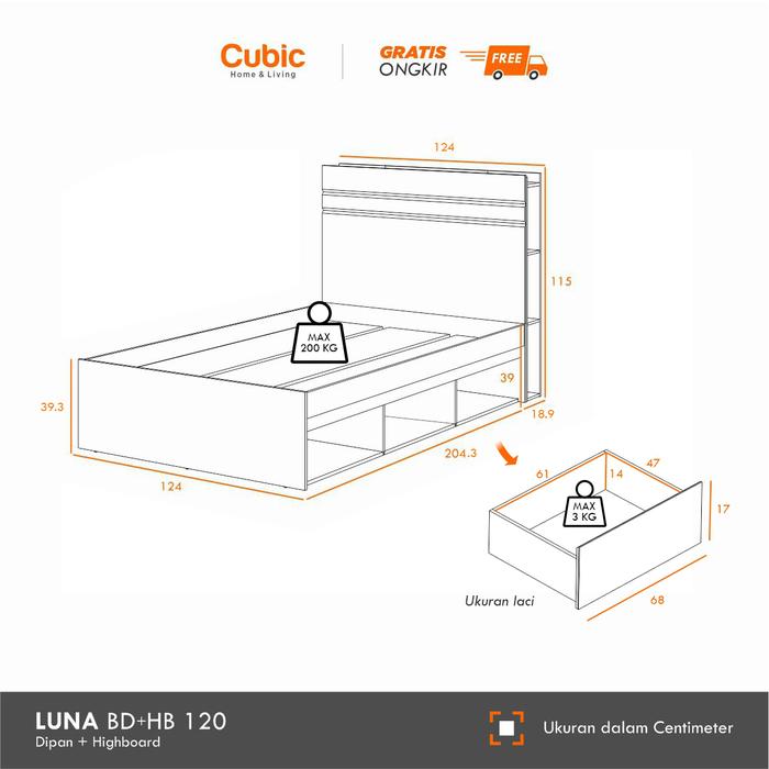 [PROMO] CUBIC DIPAN KASUR 120X200 RANJANG TEMPAT TIDUR LUNA HBD 120 SET DIVAN + HEADBOARD