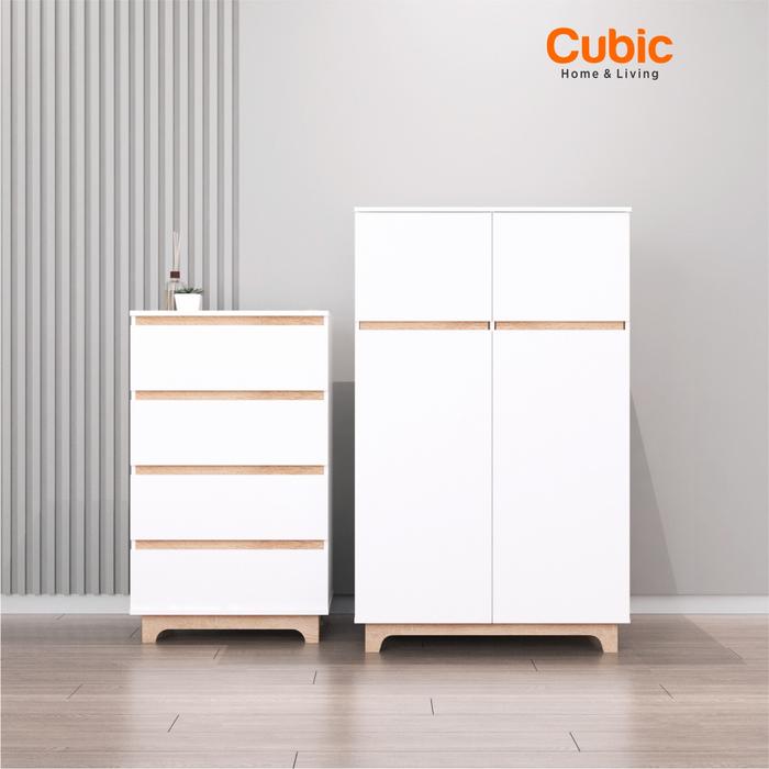 [PROMO] CUBIC CHEST DRAWER MINIMALIS LEMARI LACI 4 SUSUN MILANO CH4 WHITESONOMA OAK