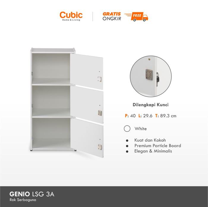 [PROMO] CUBIC RAK PINTU 3 SUSUN MINIMALIS LEMARI SERBAGUNA GENIO LSG 3A WHITE