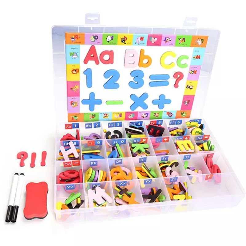 magnet letters 278 pcs terlengkap huruf & angka terbaru / eva foam movable alphabet magnets letter / media belajar anak