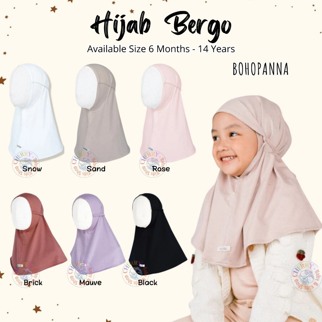Bohopanna Hijab Bergo 0-14 Tahun Hijab Instant Tali Anak Perempuan / Pakaian Lebaran / Raya / Muslim CBKS