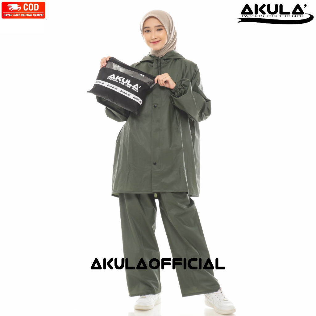 JAS HUJAN, RAINCOAT Pria Wanita Terbaik By AKULA Anti Rembes HIJAU ARMY