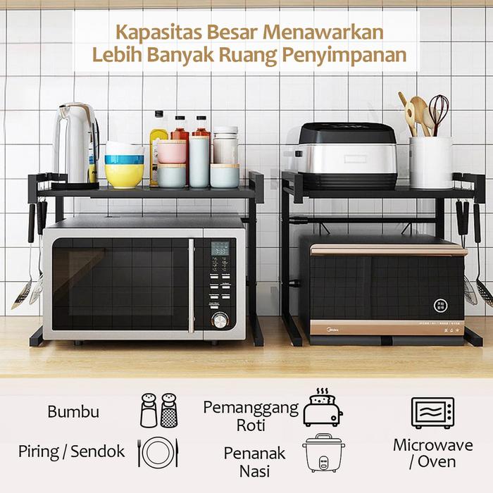 [PROMO] RAK SERBAGUNA RAK PENYIMPANAN MICROWAVE RAK BUMBU DAPUR PORTABLE PANCI HITAM
