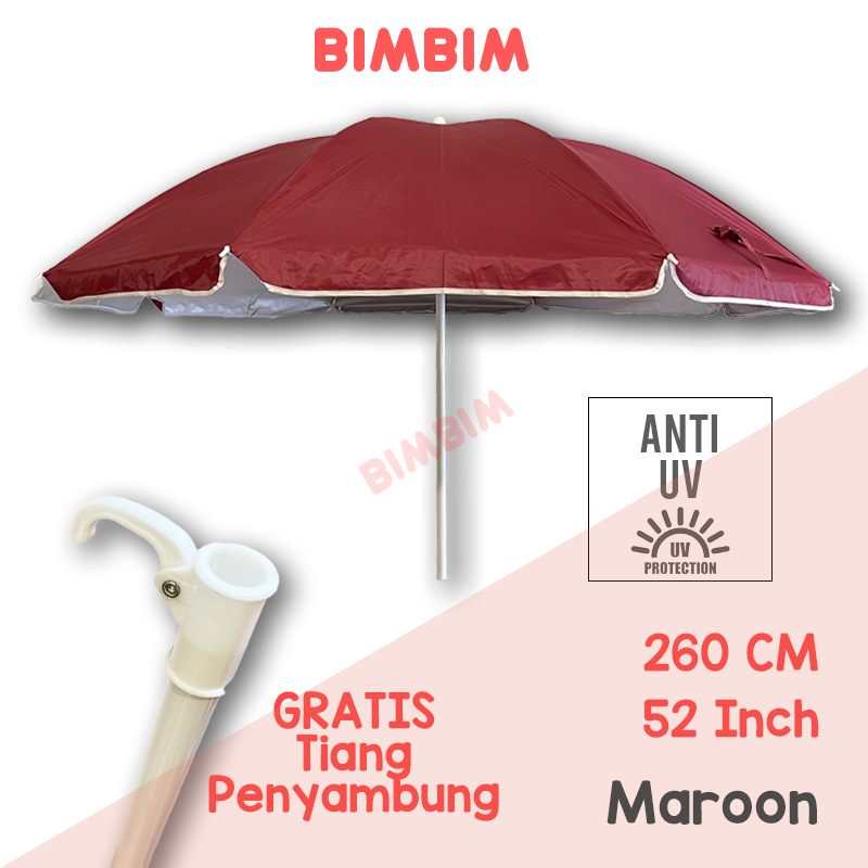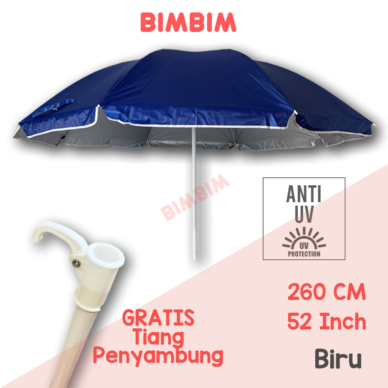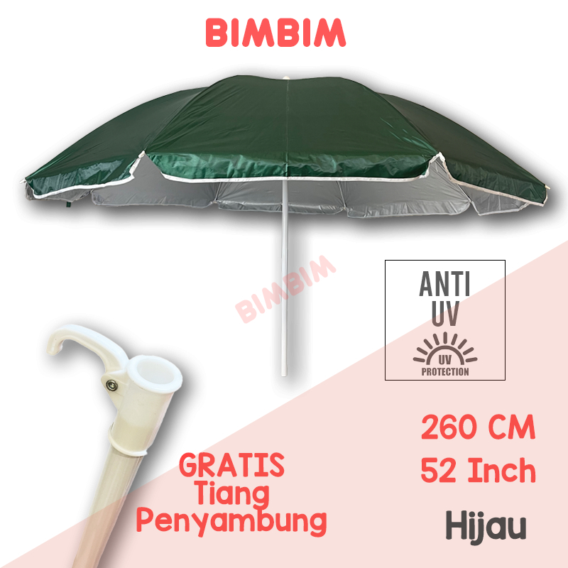 Payung Pantai 52 Inch 260 cm Payung Tenda Jualan Cafe Bazaar Anti UV Dalam Silver