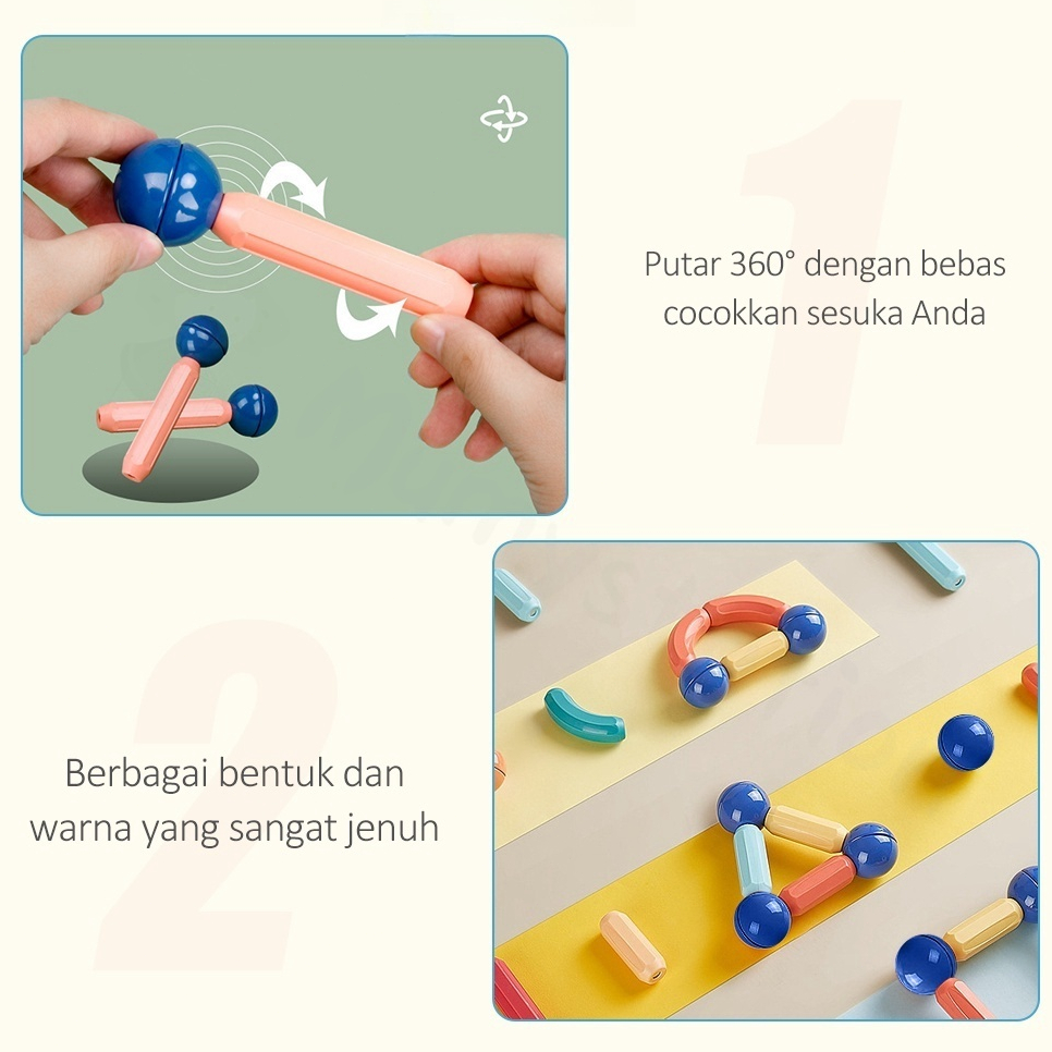 【MURAH 】100/88/64pcs Magnetic Sticks Blocks Merakit Mainan-mainan edukasi anak Berbagai Splicing Tongkat Blok Magnetik
