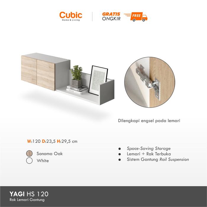 [PROMO] CUBIC MEJA GANTUNG RAK GANTUNG YAGI HT 120+HS 120 SONOMA OAKWHITE