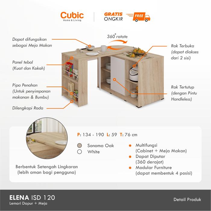 [PROMO] CUBIC MEJA DAPUR MINIMALIS KITCHEN ISLAND ELENA ISD 120