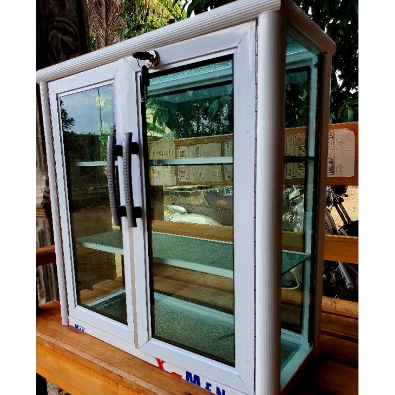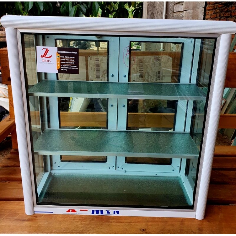 etalase aluminium serbaguna PREMIUN warna PUTIH 50x20x50 rangka bulat
