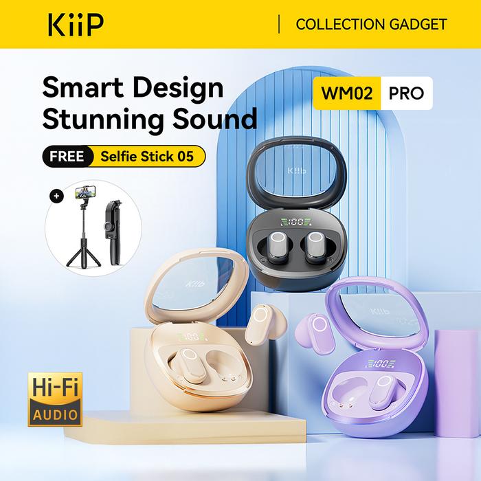 Kiip Wm02 Pro Tws Headset Bluetooth Earphone Mini Earbuds Handsfree Dengan Smart Led Display Case - Black