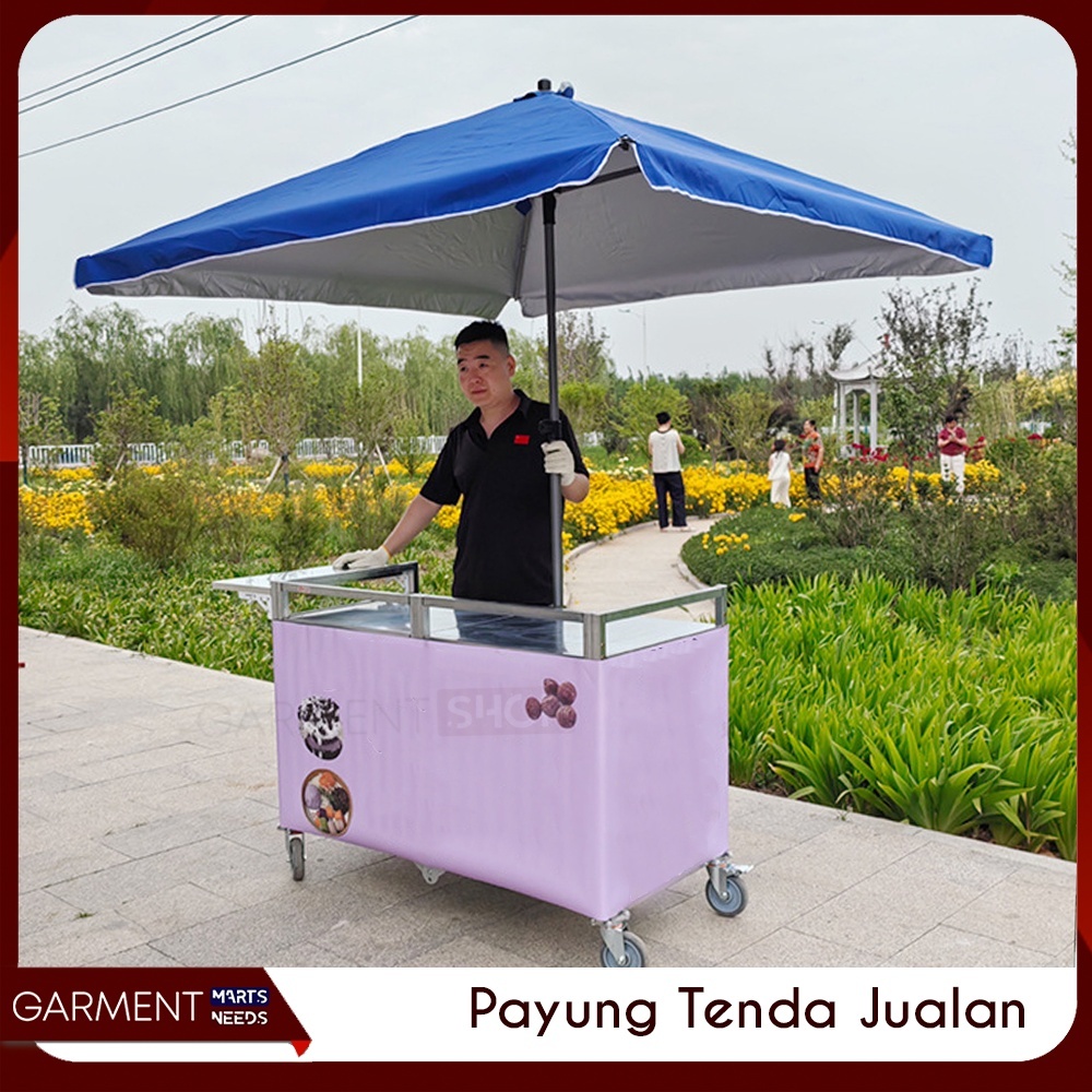 Payung Jualan Kotak Persegi Jumbo Tiang Kokoh Tenda Dagangan PKL Anti UV Besi Hitam Anti Karat