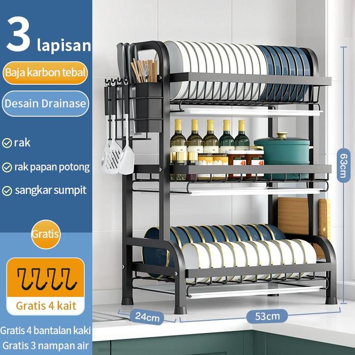 [PROMO] RAK PIRING RAK PENGERING PIRING STAINLESS RAK CUCI PIRING ANTI KARAT 3 SUSUN 43CM HITAM