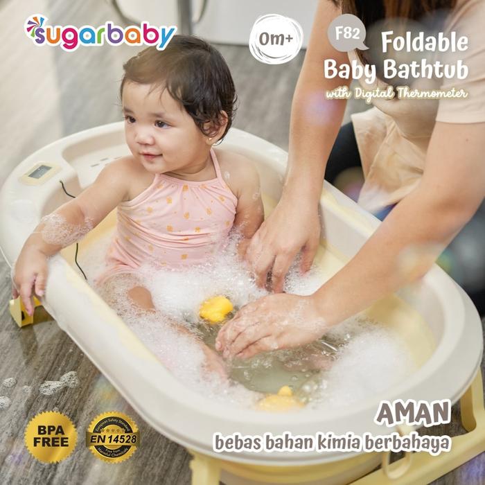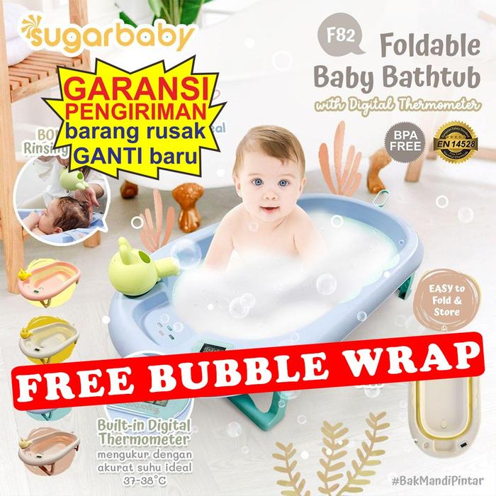 BAK MANDI SUGAR BABY F82 FOLDABLE BATHTUB WITH DIGITAL THERMOMETER BLUE GREY FREE BUBBLE SABUN BAYI GREEN HEAT - BAK F82 GREY