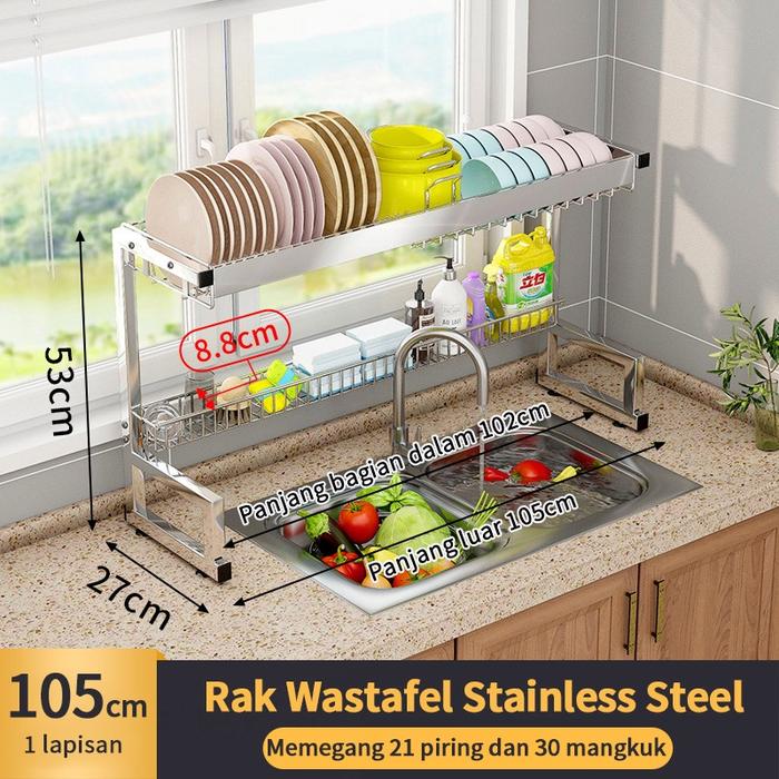 [PROMO] RAK DAPUR STAINLESS RAK PIRING WASTAFEL CUCI PIRING KOKOH KUAT 65 CM 105CM