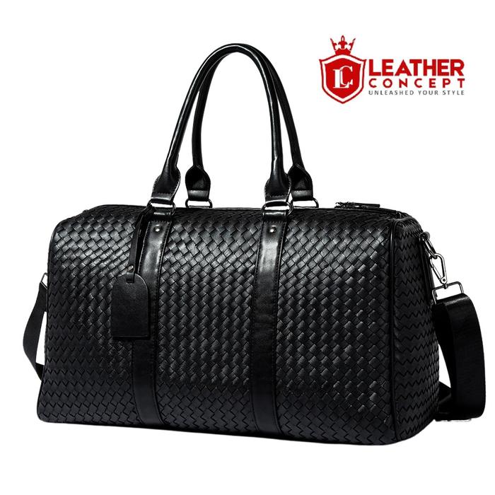 Leather Concept Hitman Tas Travel Bag Pria Bahan Kulit Anyaman Hitam Mudik - Hitam