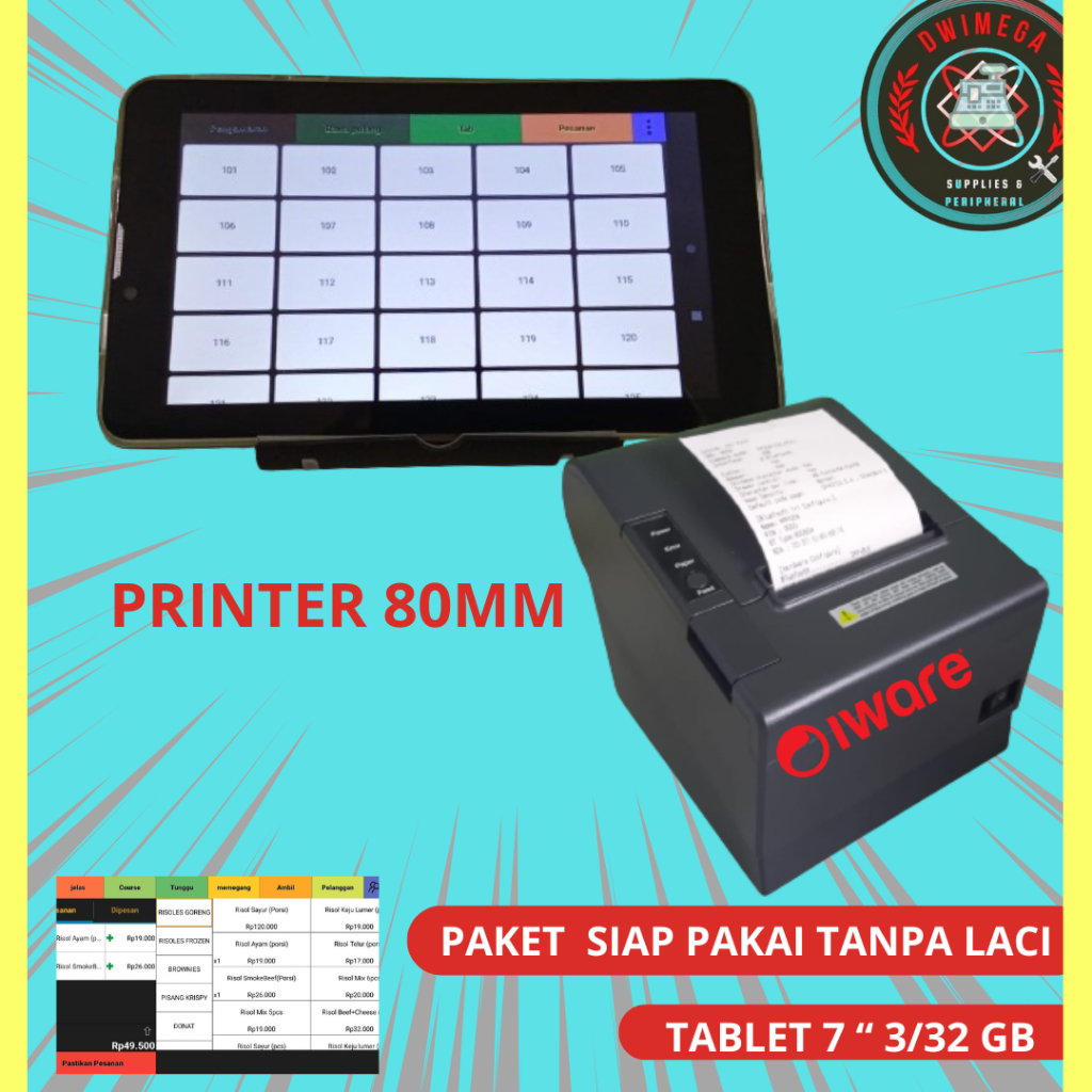 PAKET TAB+SISTEM, TAB+SISTEM+PRINT 57M, TAB+SISTEM+PRINT 80M, LENGKAP PRINTER 57MM, LENGKAP PRINTER 80MM