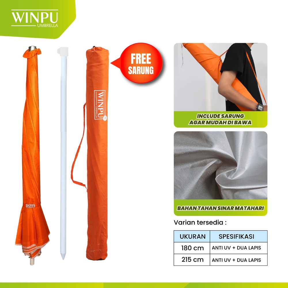 WINPU Payung Tenda Jualan Besar Ukuran Standar 180Cm - 215 Cm Polos