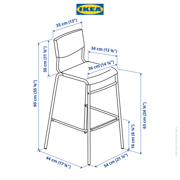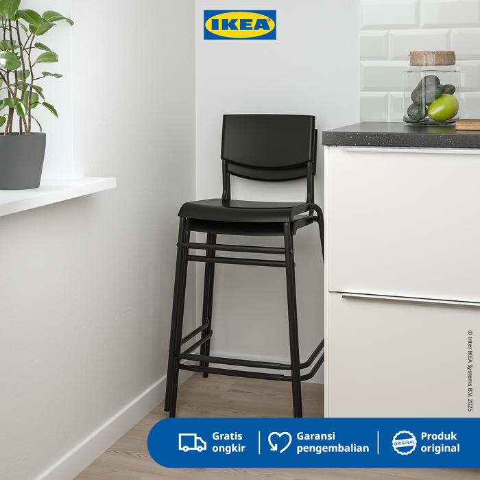 [PROMO] IKEA STIG KURSI BAR MINIMALIS DENGAN SANDARAN HITAM 63CM