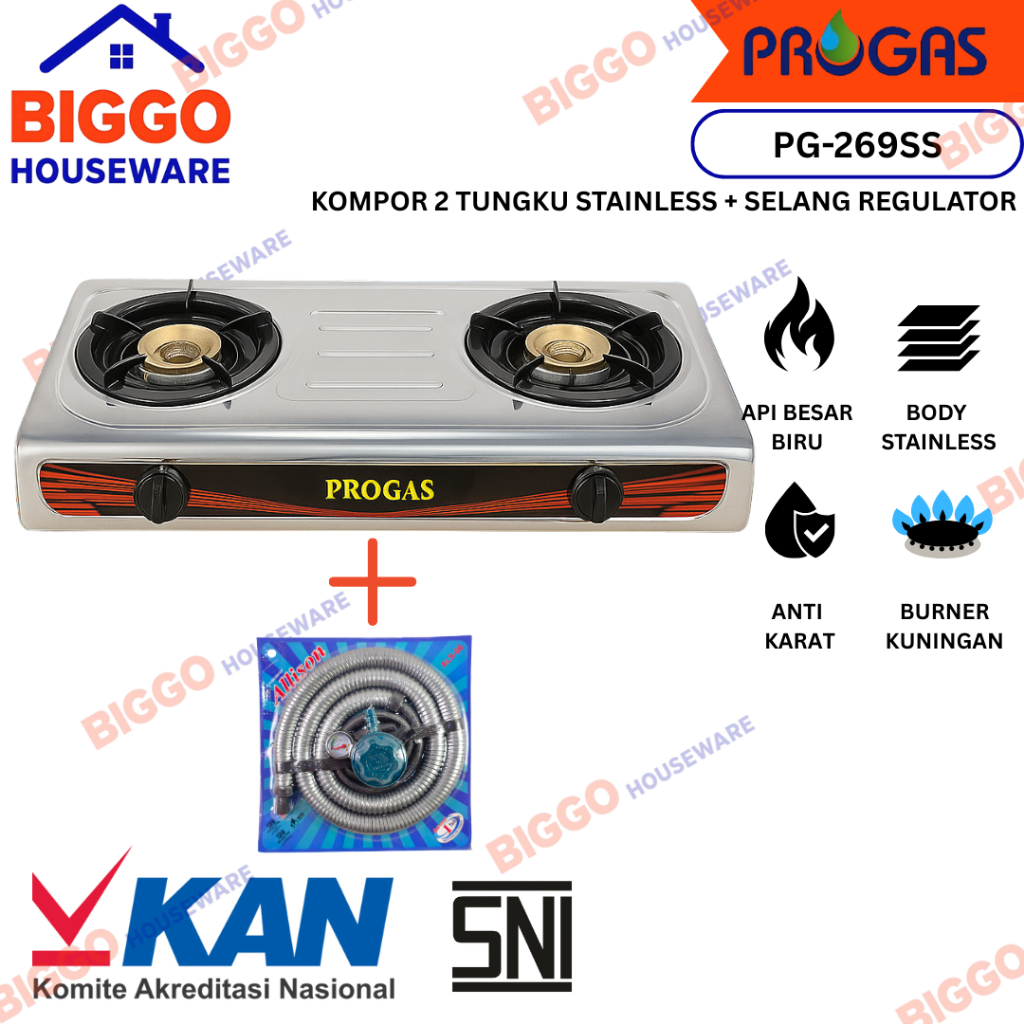 PROGAS Kompor Gas 2 Tungku Stainless Steel PG-269 Api Biru Kualitas Premium
