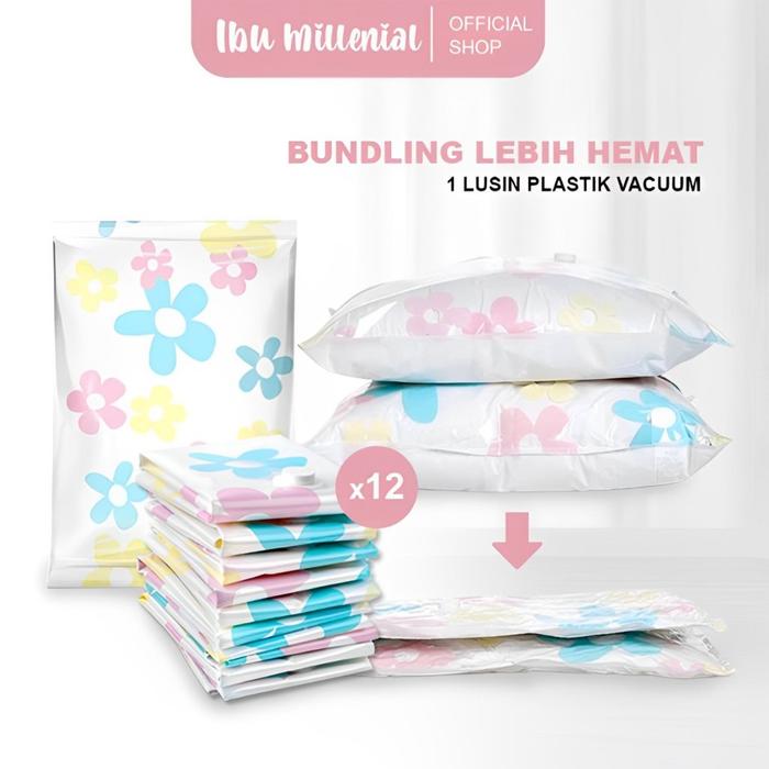 Ibumillenial Bundle Vacuum Bag 12Pcs Lebih Hemat Travel Bag Organizer Vacum Kantong Pakaian Plastik Vakum Travel Plastik