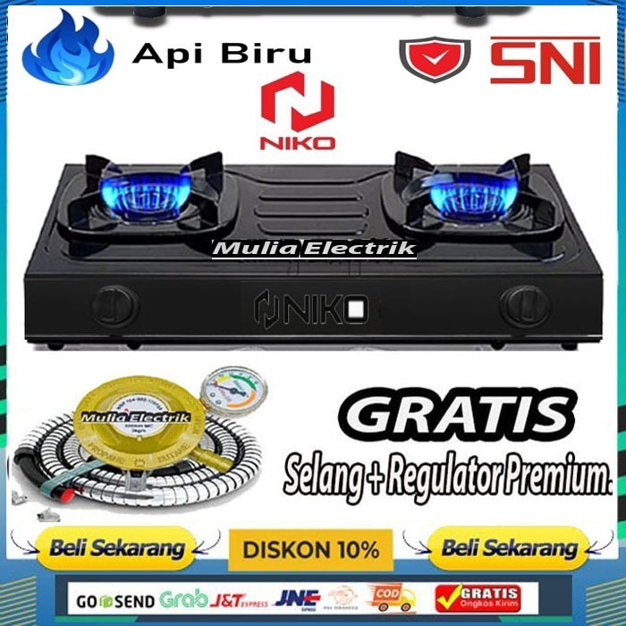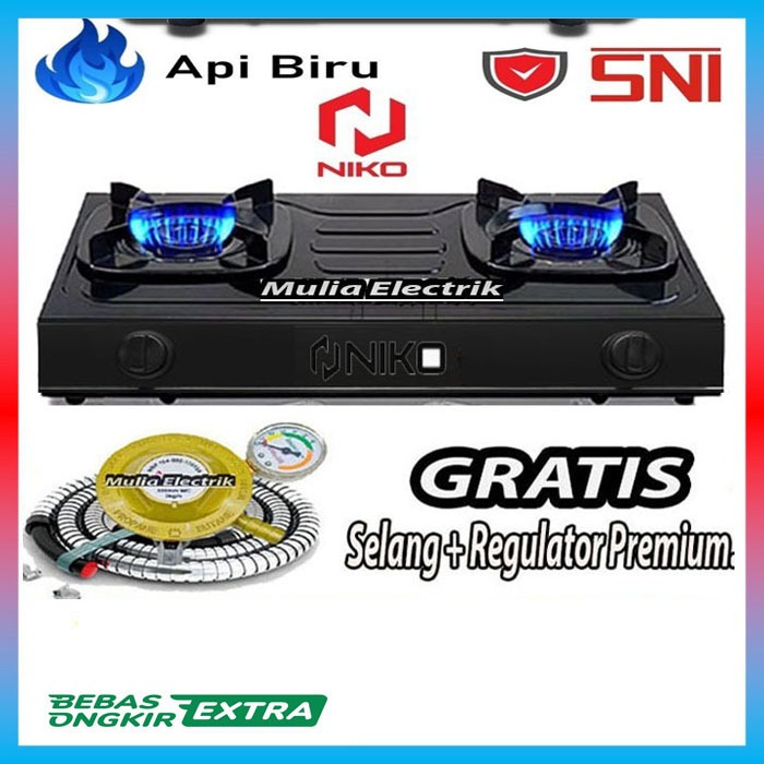 NIKO KOMPOR GAS 2 TUNGKU TEFLON / GRATIS 1 PAKET SELANG REGULATOR MANTAP