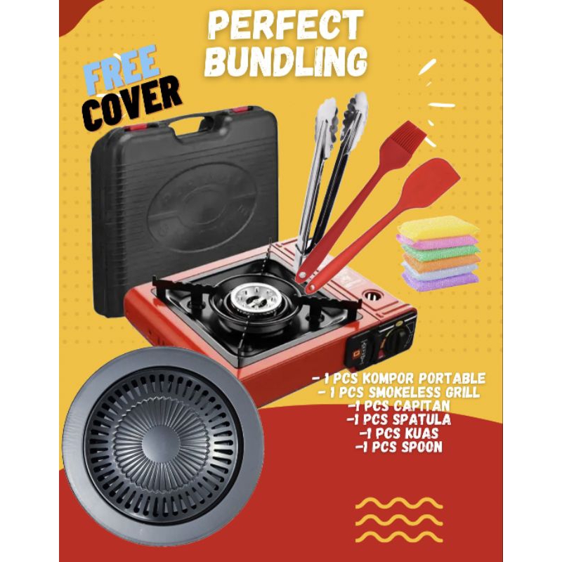 PAKET KOMPOR BUNDLING HEMAT GRILL BULAT/ SMOKELESS KOMPOR PORTABLE