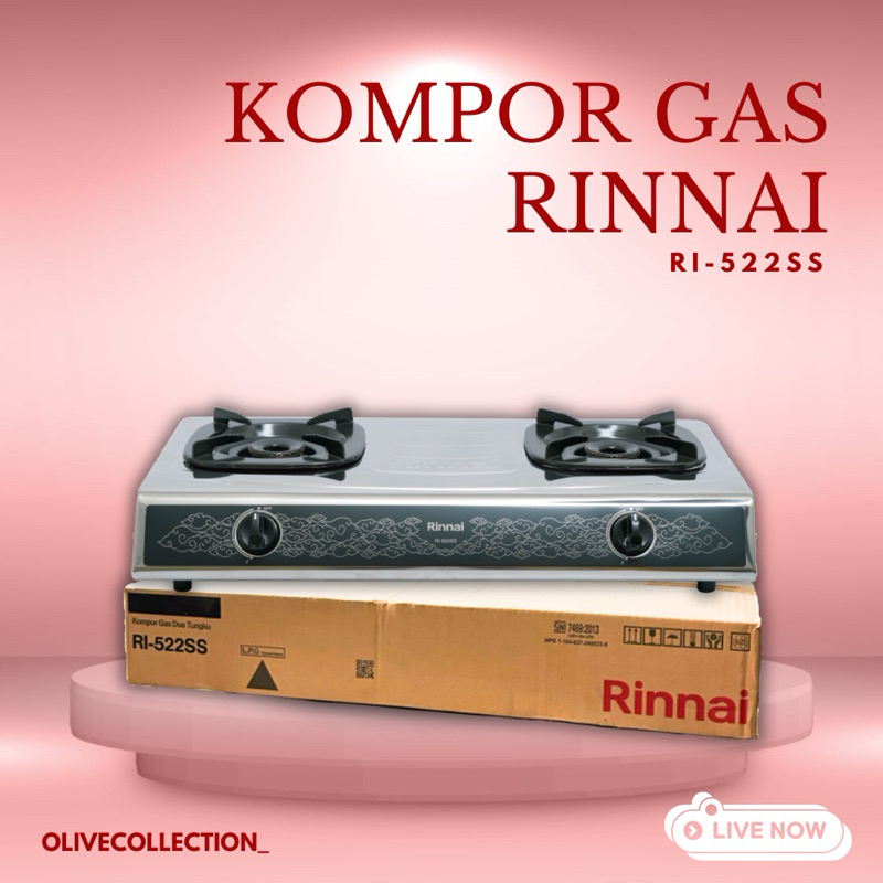 RINNAI KOMPOR GAS RI-522SS / RI-522 SS 2 TUNGKU STAINLESS