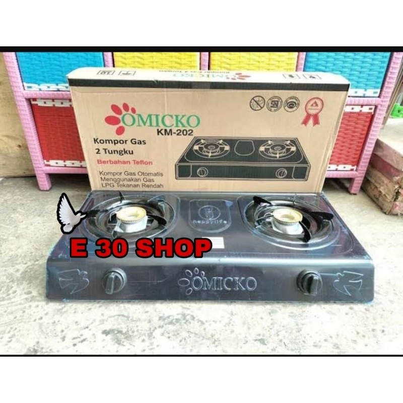 Kompor Gas 2 Tungku Kompor Gas LPG Otomatis Omicko KM-202 Teflon