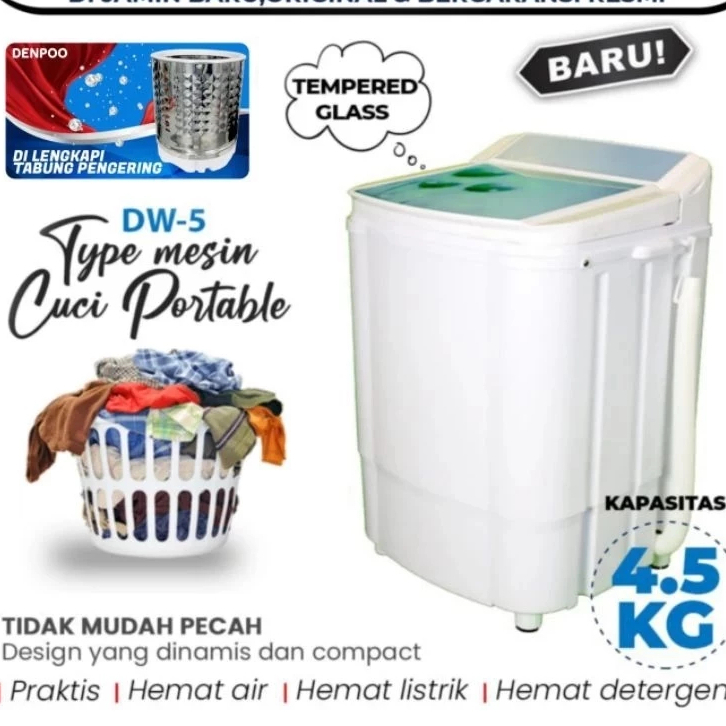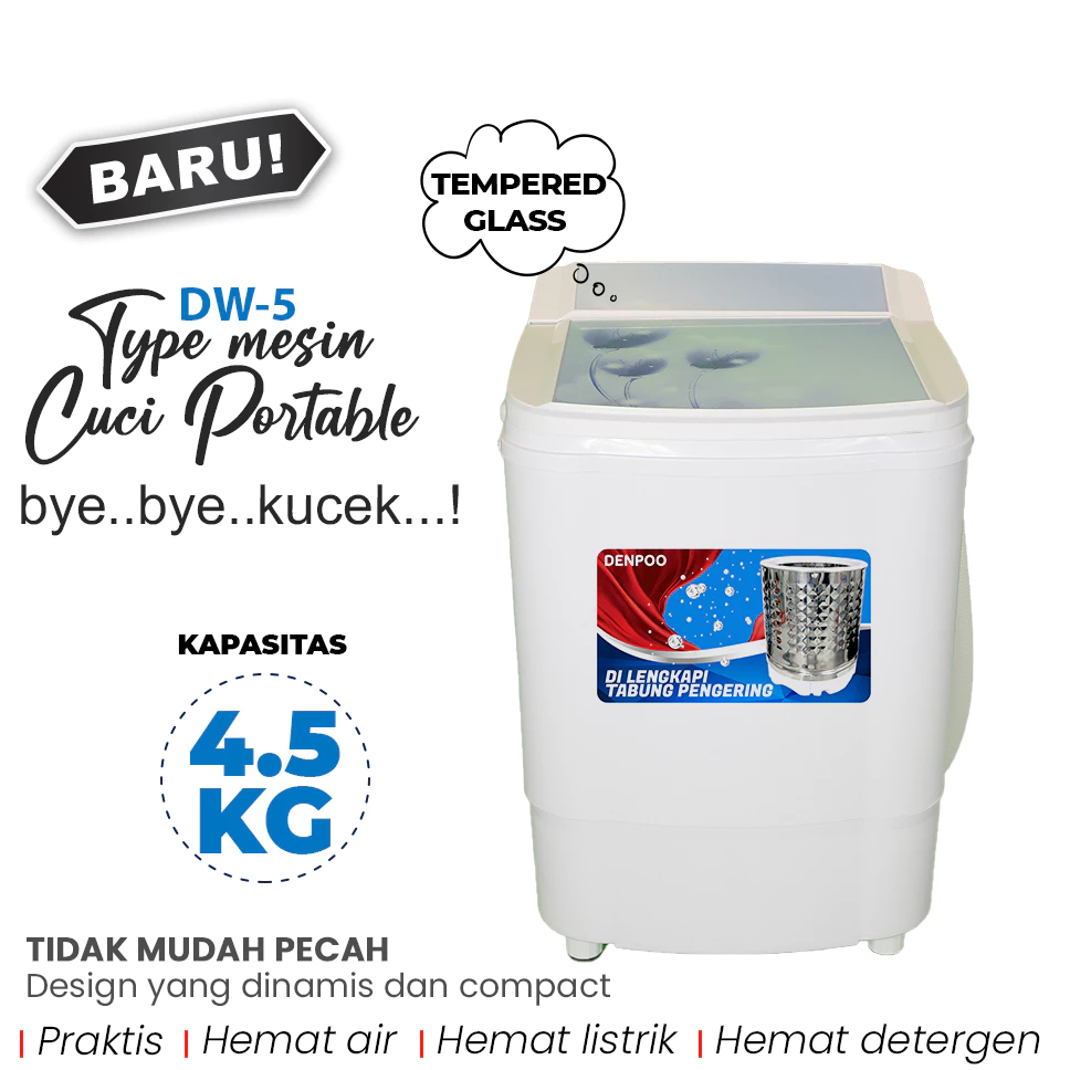 Mesin Cuci Portable Mesin Cuci Mini 4,5 Kg Denpoo Dw 5 Tempredd Glass
