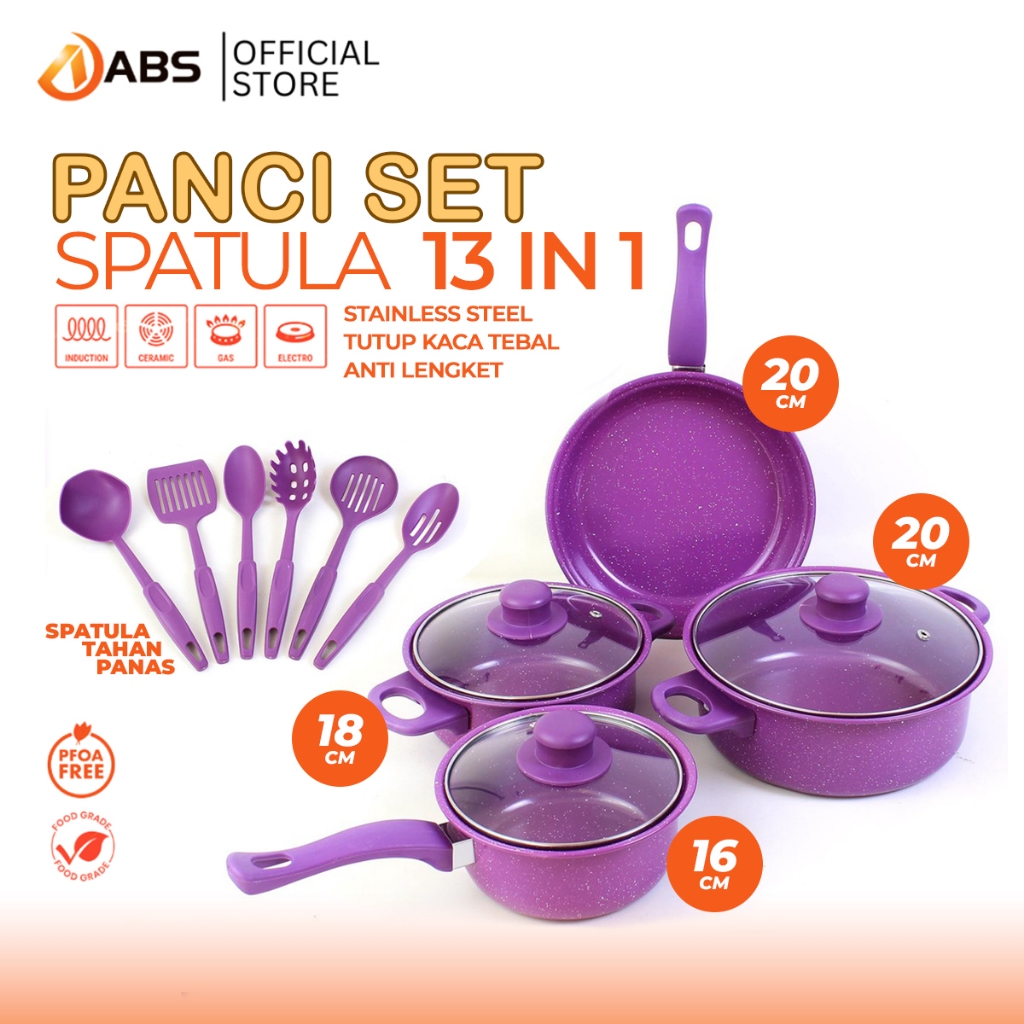 ABS Cookware Panci Set Wajan Penggorengan Spatula Set Isi 13Pcs 1 Set Frypan Saucepan