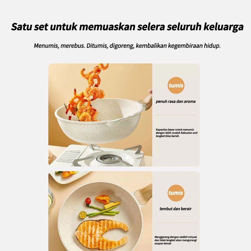 7 PCS Granit Antilengket Peralatan Masak Dapur Untuk Semua Kompor Panci Wajan Penggorengan