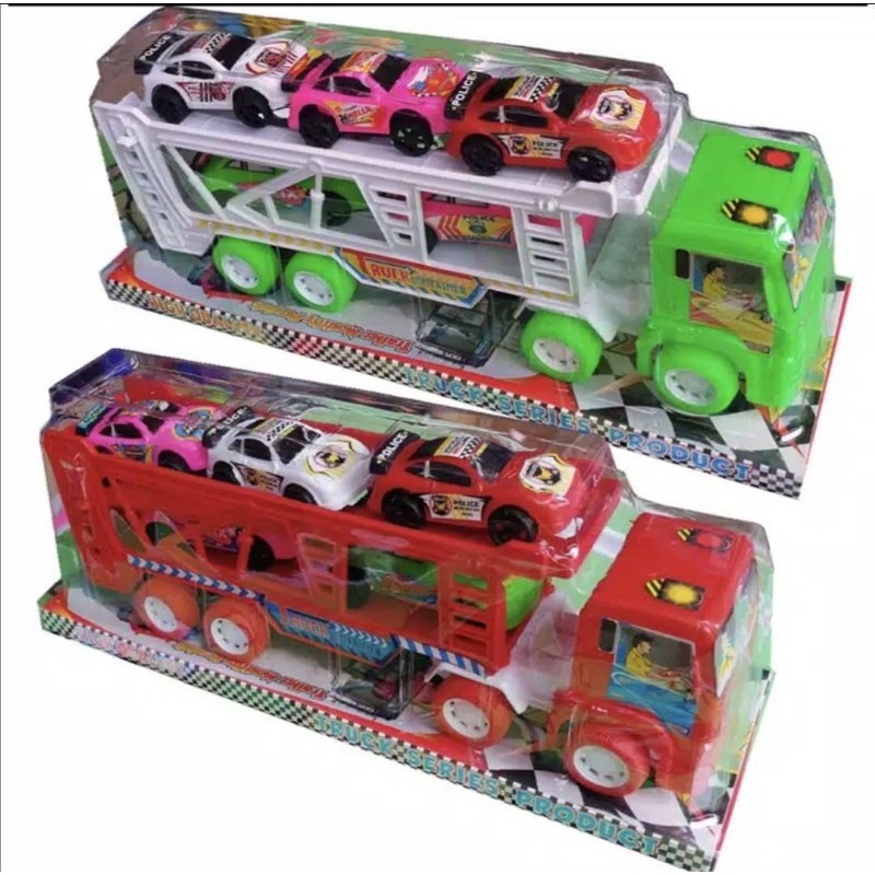 Mainan Mobil Truk Kontainer Angkut 5 Mobil Plastik