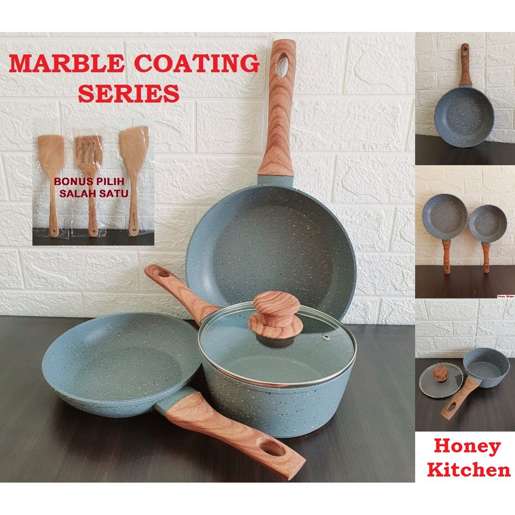 PANCI SET PAKET HEMAT MARBLE SERIES HONEY KITCHEN 2 FRYPAN DAN 1 SAUCEPAN TUTUP KUALITAS BAGUS
