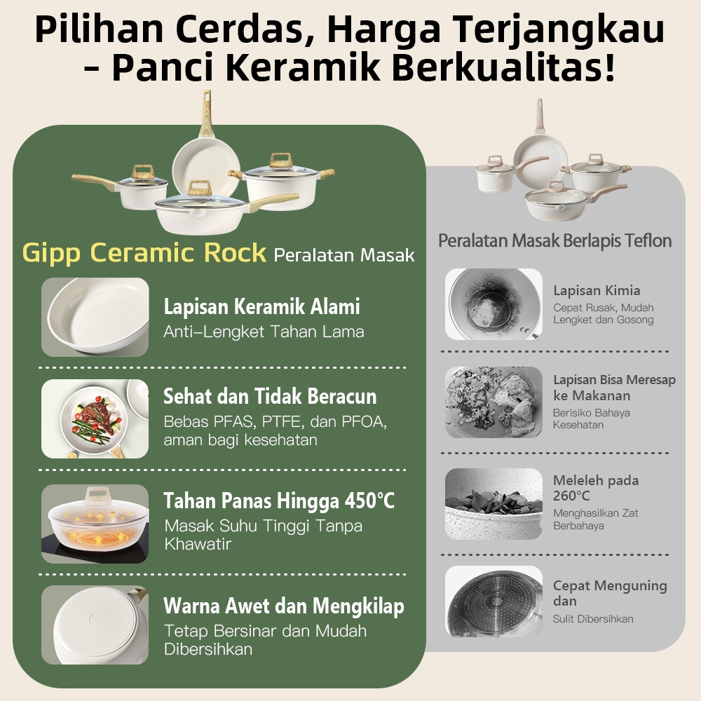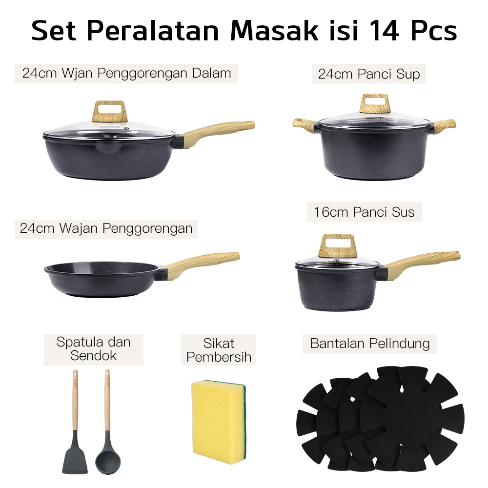 GiPP 14 Pcs Cookware Set Granite Anti Lengket Marble Coating Putih