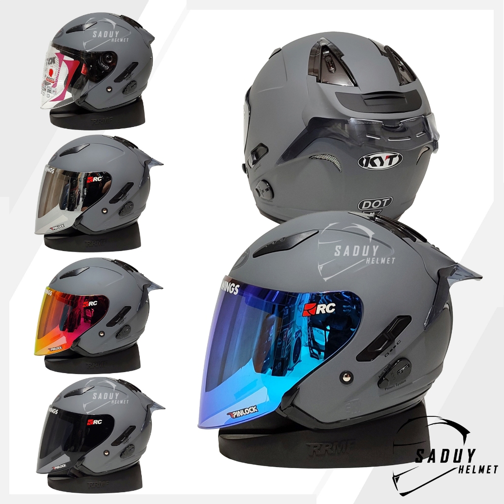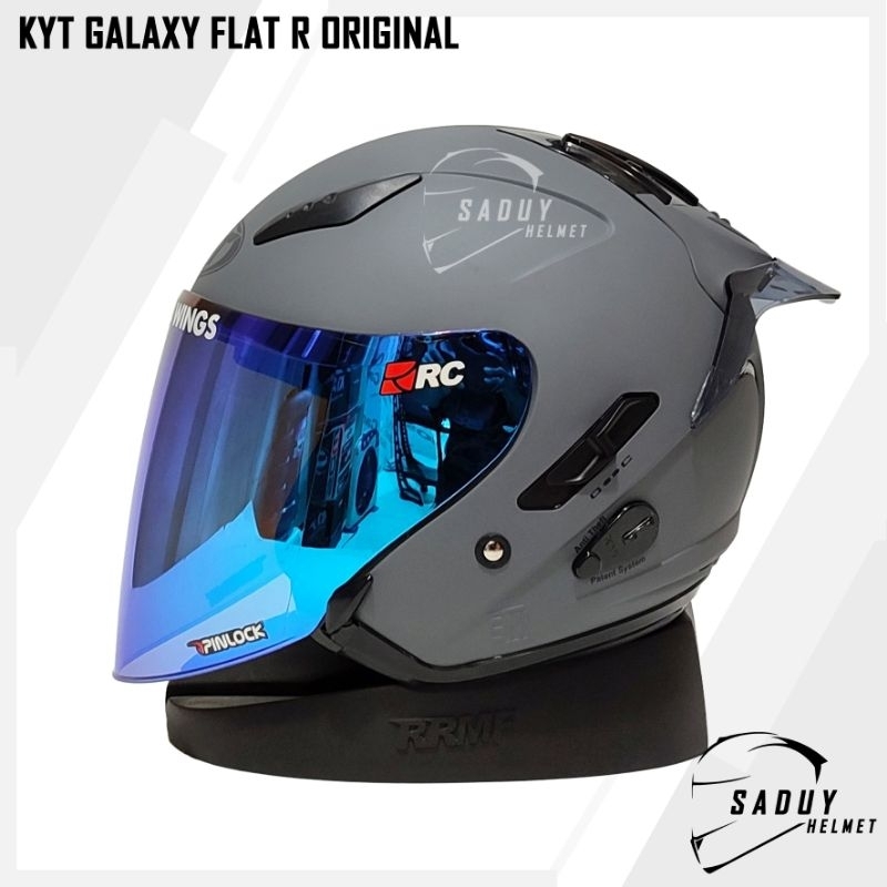 KYT GALAXY FLAT R SOLID GORILA GREY DOP / ABU DOP - PAKET GANTENG HELM KYT HALF FACE DOUBLE VISOR