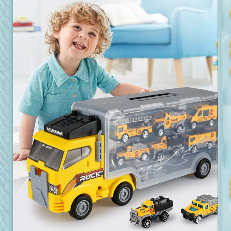 WANGAO Mainan Truk Penyimpanan Mobil Mobil Truk Kontainer Fire Truck Alloy Dengan Tempat Box Mainan
