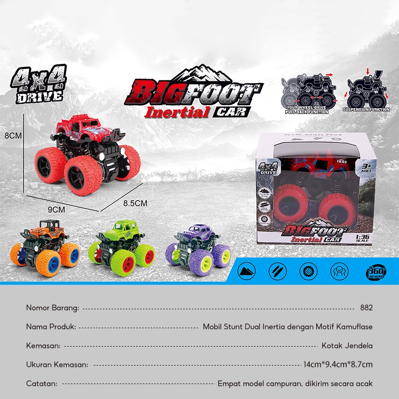 OHSOME - Mainan Anak Mobil Monster Jeep Mobil Bangunan Off Road 1:36 4 Wheel 4x4 Drive 360° / Diecast Mobil 3D DIY RAND