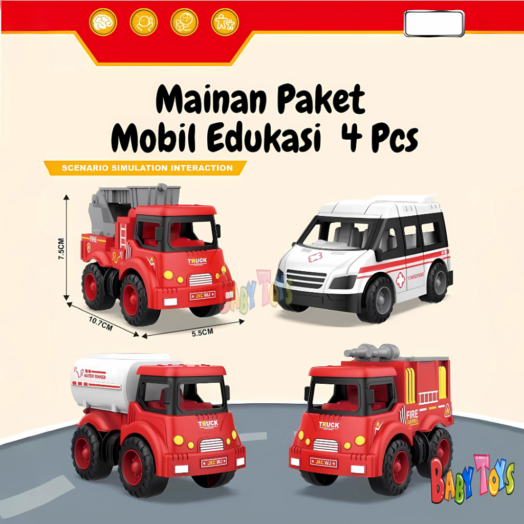 BabyToys Mainan Mobil Mobilan Anak Laki Laki Perempuan Edukasi Truk Konstruksi Pemadam Kebakaran