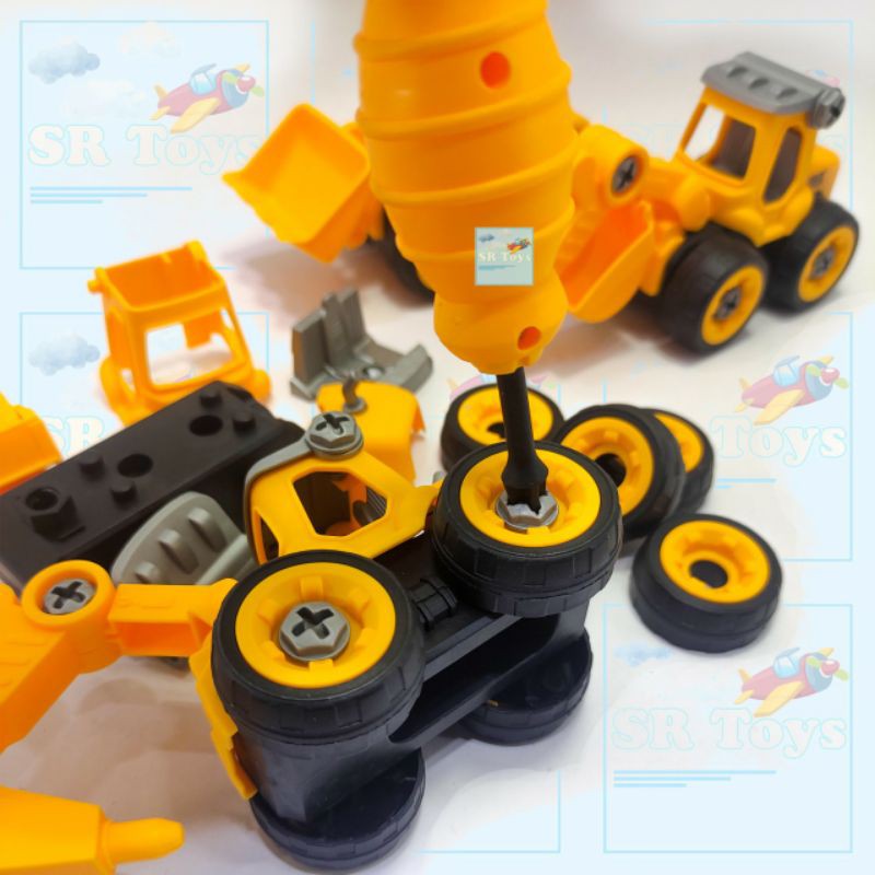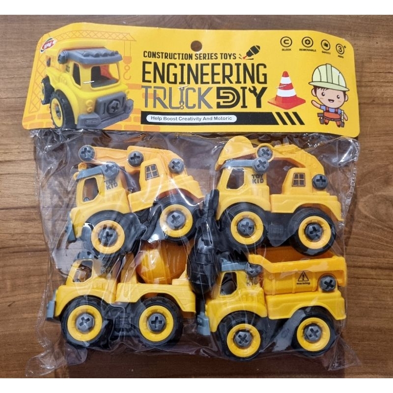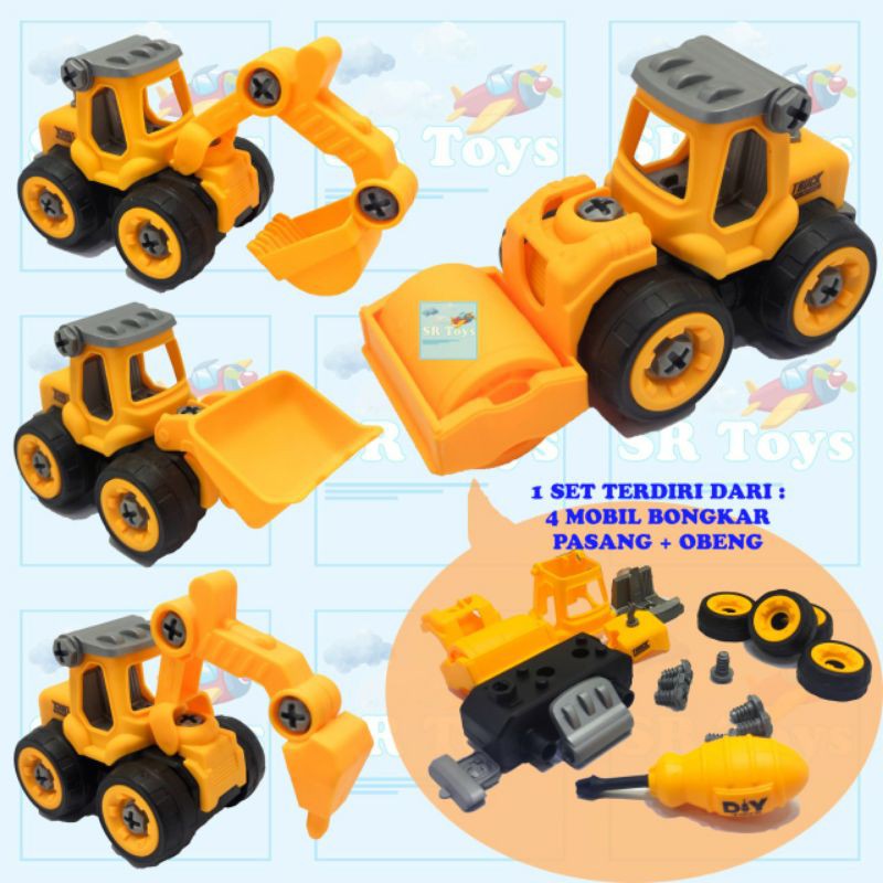 Mainan Anak DIY Mobil Truk Kereta Rakit Konstruksi Bongkar Pasang Dengan Obeng
