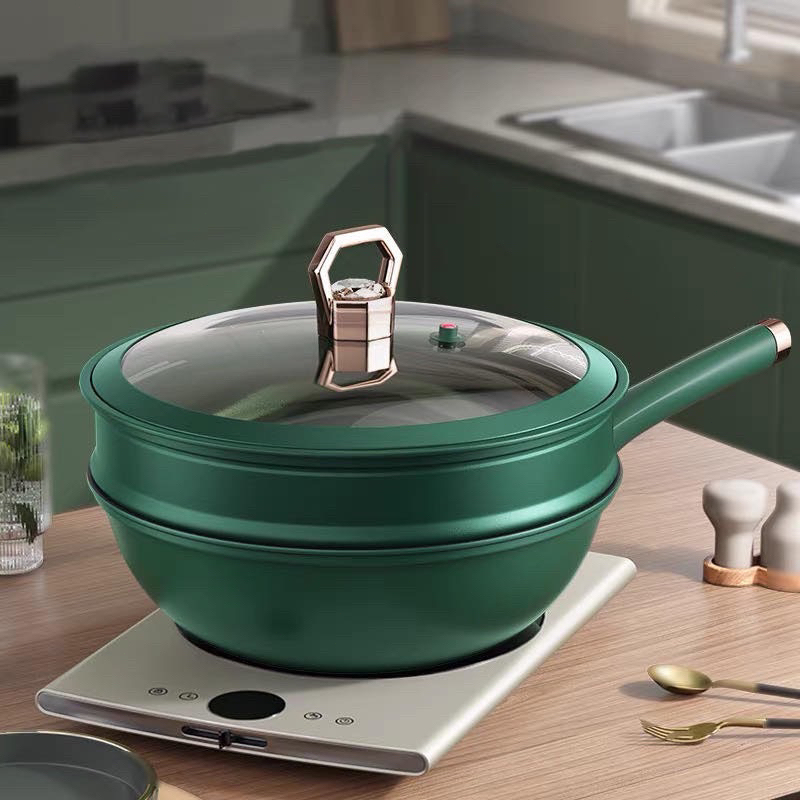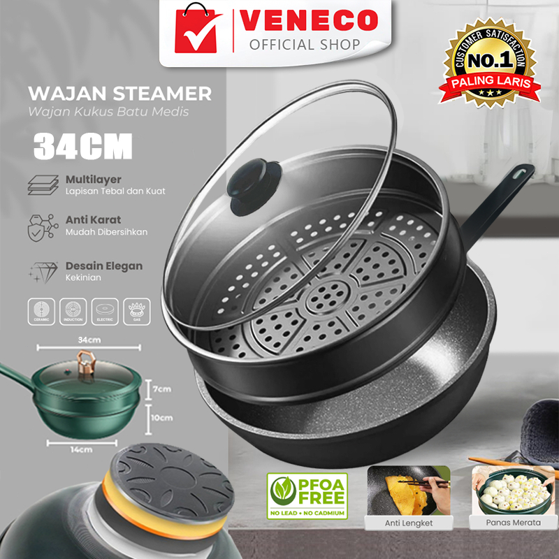 3IN1 Wajan Batu Medis dengan Steamer 32 CM Panci Kukus PREMIUM Super Tebal / Panci Kukus Serbaguna