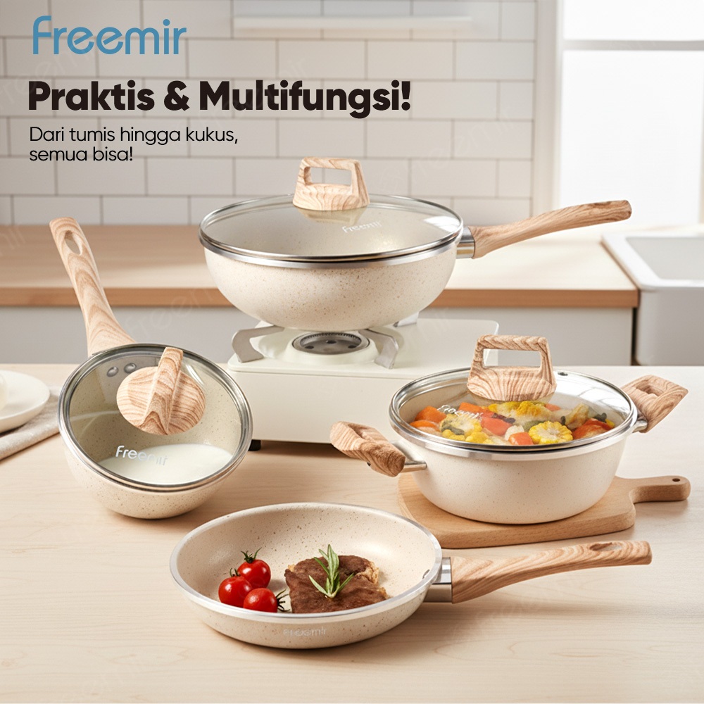 Special free Chopper & freemir Wajan Panci Set7Pcs 26/20/20/16 Granite Anti Lengket Tutup Kaca