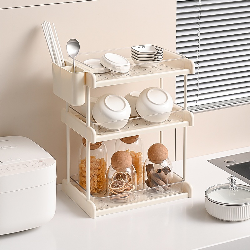 Rak Tiris 2/3 Susun Warna Cream - Rak Piring & Gelas, Peniris Perlengkapan Dapur, Multifungsi, Hemat Tempat, MUDAH DIBER