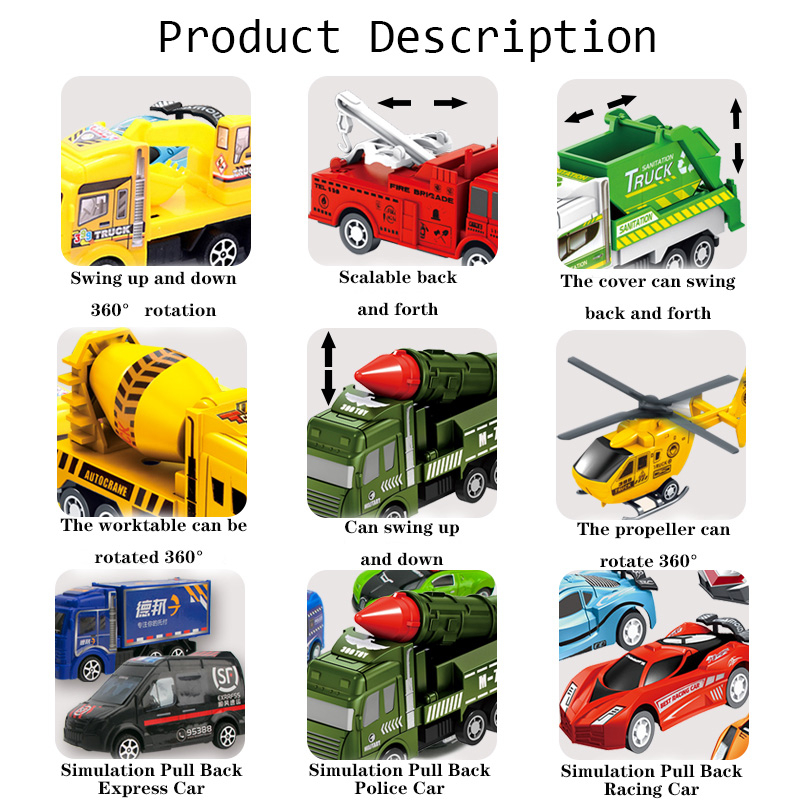 ZCTOY 6PCS/SET Set Mobil Mainan Anak-anak Simulasi Truk Pemadam kendaraan rekayasa pesawat terbang membersihkan mobil Ma