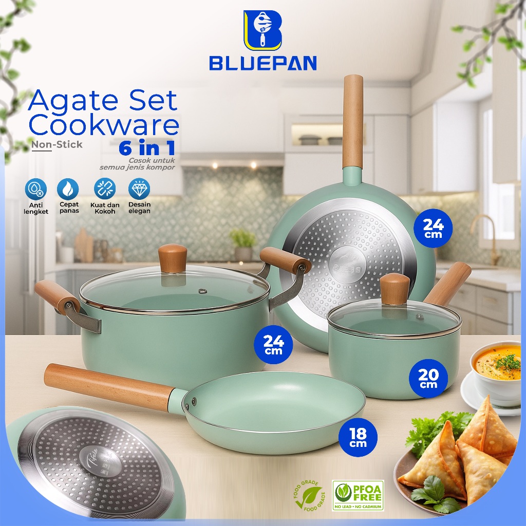 Bluepan Agate Set Cookware Panci Set 6IN1Frypan Saucepan Granite Coating Anti Lengket