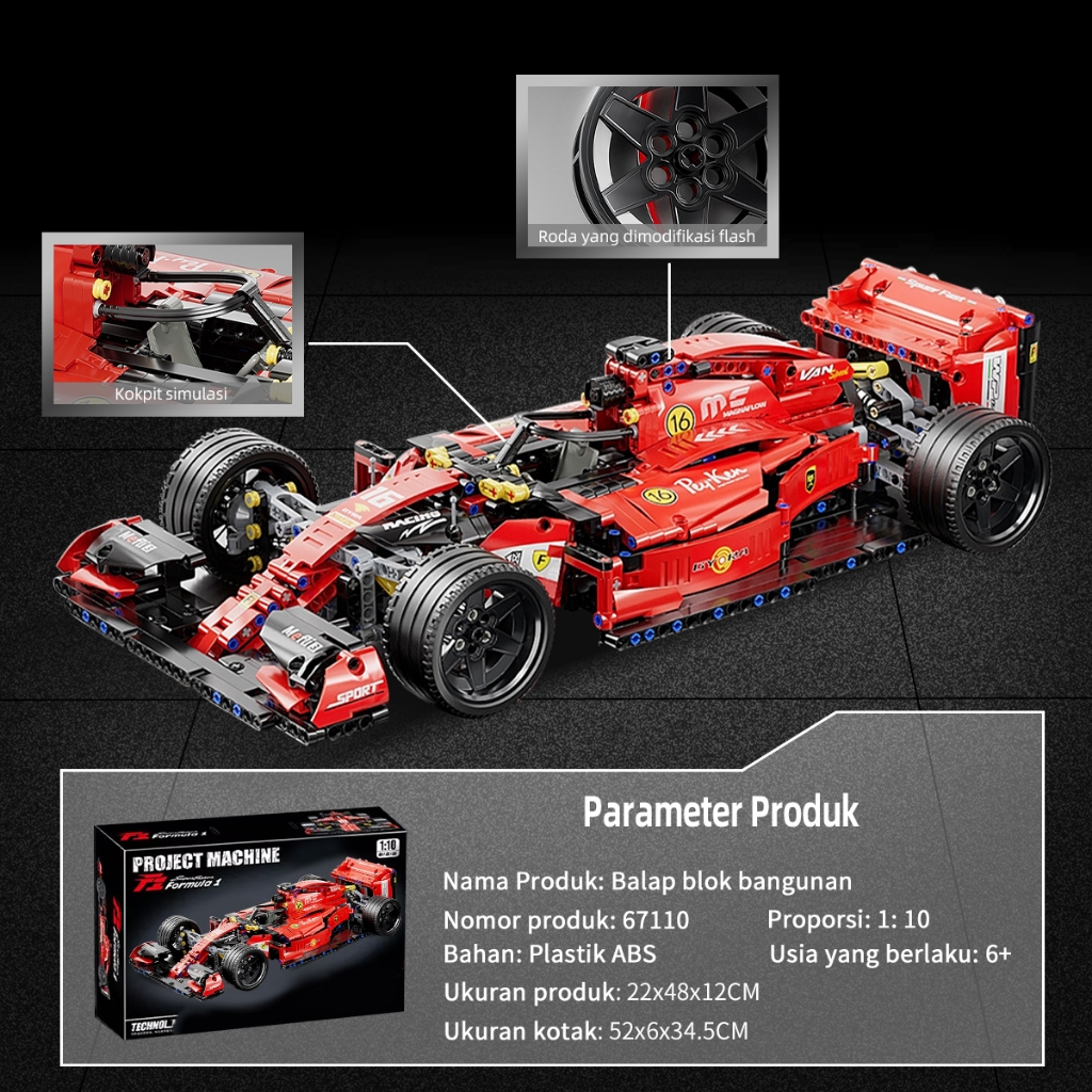 TOY LINX 1:10 Control F1 Formula Racing Mainan blok bangunan mainan mobil hadiah Model mobil balap