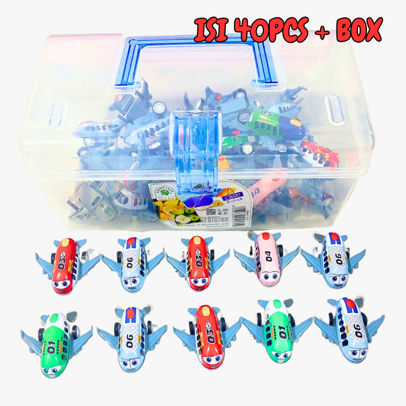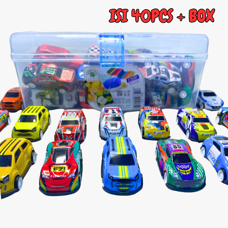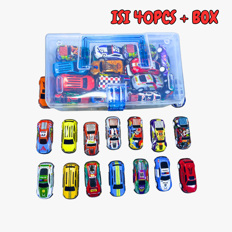 WEIBO Mainan Mobil dan Pesawat Mini 40 PCS + Box Pullback Mix Colorfull / Racing Car / Metal Mini Cars / Kids Toys