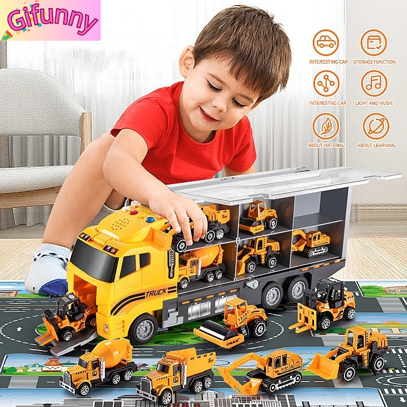Gifunny Mobil Truk Mainan Anak Paduan dengan Kotak Penyimpanan Deformasi Ketapel Trek Balap Lipat