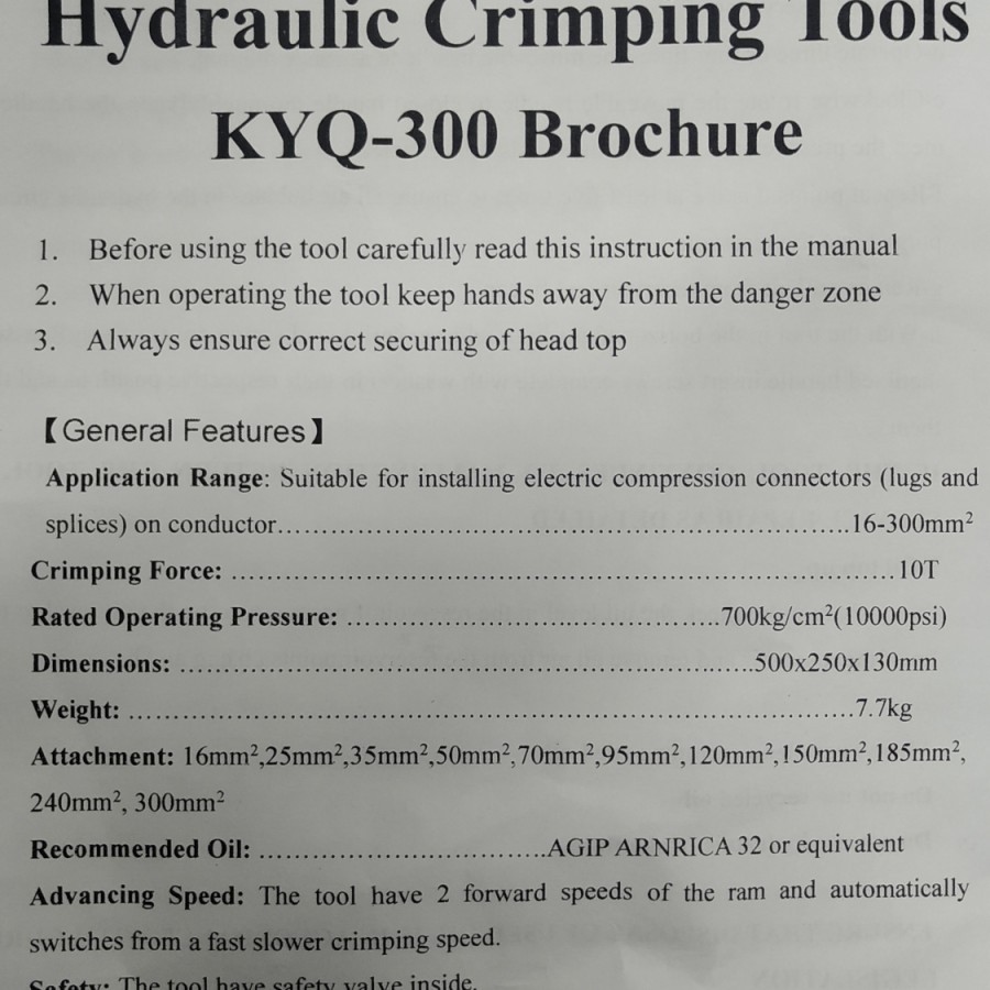 Tang Press Skun Hidrolik KYQ 300 | Hydraulic Crimping Tools KYQ 300