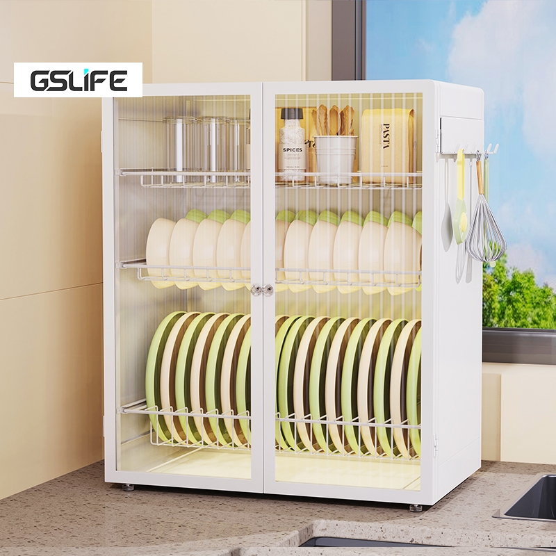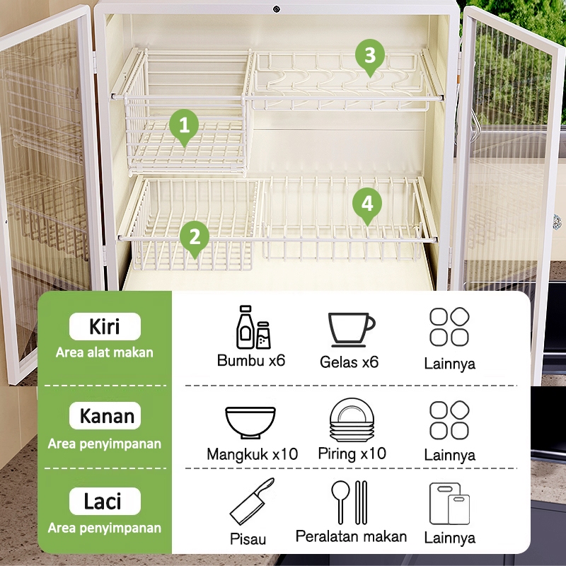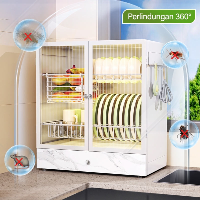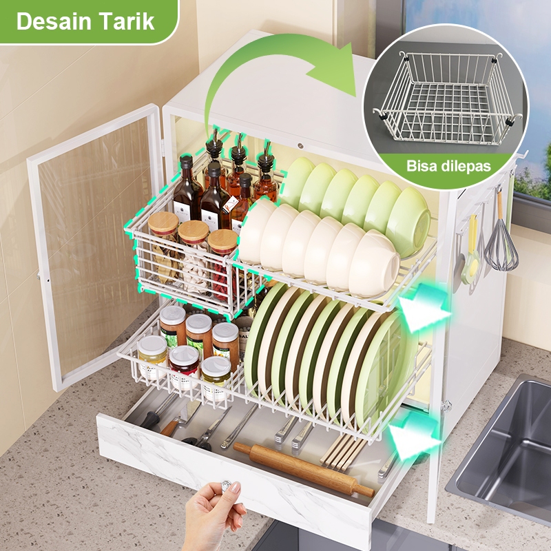 Gslife Lemari Piring Minimalis Dengan Laci Rak Piring Tertutup Stainless Pintu Kabinet Rak Dapur Serbaguna